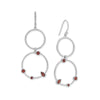 Rhodium Plated Garnet and Hammered Circle Drop Earrings