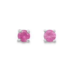 5mm ruby red CZ rhodium plated sterling silver stud earrings.