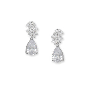 Rhodium Plated CZ Cluster Pear Drop Earrings