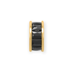 - 8mm x 4.2mm wheel charm with 3mm x 2mm black baguette CZs