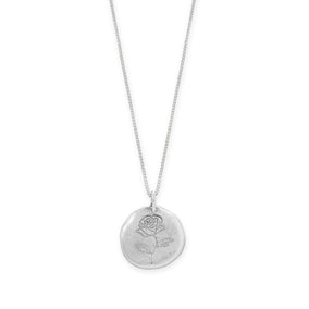 16" + 2" Rhodium Plated Garnet and Hammered Circle Necklace