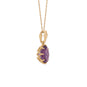 Alluring amethyst necklace! 18" 14kt gold necklace features an openwork pendant with 12mm x 10mm precision cut amethyst stone. Necklace is finished with a spring ring closure and packaged in a gift box.