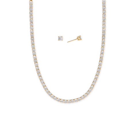Gold Tone 4-5mm CZ Tennis Necklace and Earrings Jewelry Set