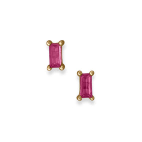 14 karat gold plated sterling silver stud earrings feature 2.5mm x 5mm pretty pink baguette cut CZs.