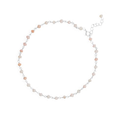 18" Rainbow Moonstone, Cultured Freshwater Pearl and Pink Chalcedony Necklace