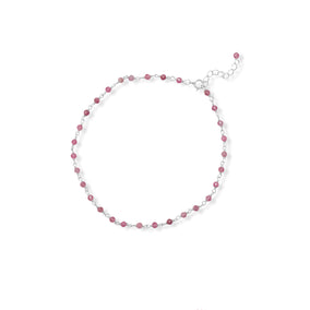 Add a beautiful pop of color to any outfit with this cute anklet! 9.5" plus 1" extension sterling silver anklet 2.3mm x 3mm pink tourmaline beads and has a spring ring closure.