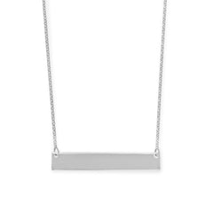 16" + 2" extension sterling silver necklace with a polished engravable bar. The bar is approximately 5.8mm x 35mm. The necklace has a lobster clasp closure. The back of this item can be engraved for an additional cost. Learn more about engraving here.