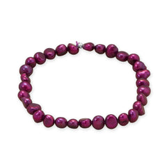 Dyed plum cultured freshwater pearl stretch bracelet. Pearls range in size from 5-6mm. Due to the nature of dyed pearls, color may vary.