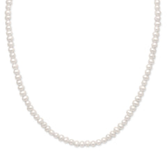 15" + 2" extension 4mm white cultured freshwater pearl necklace. This necklace has a sterling silver spring ring closure.
