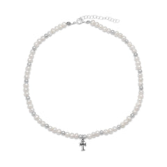 13" + 2" White Cultured Freshwater Pearl Cross Drop Necklace