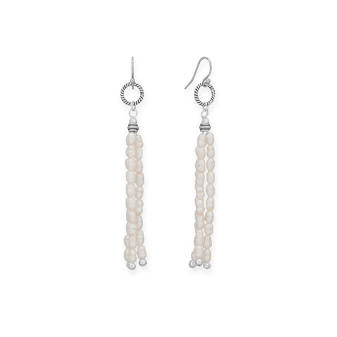 Crinkly Cultured Freshwater Rice Pearl and Bali Ring Earrings